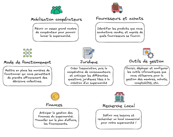 Lancer un supermarché coopératif implique des travaux sur de nombreux axes :